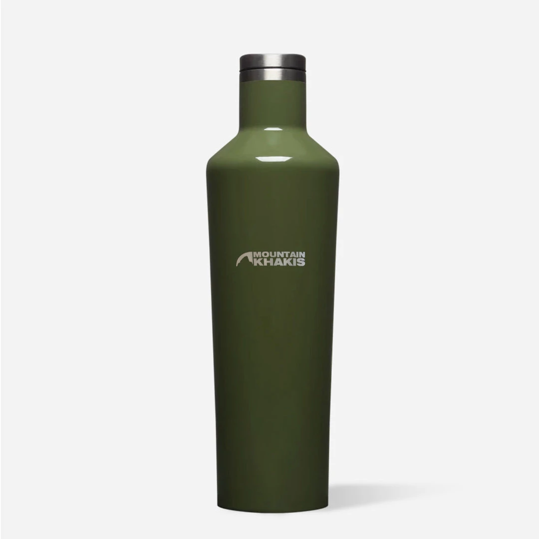 We put our spin on the classic Corkcicle Canteen just in time for hot summer gatherings. It keeps drinks ice cold for 25 hours or warm for 12. The 25 oz. size makes it perfect for transporting water for a hike or an entire bottle of wine to a cookout – you decide. Our signature Mountain Khakis logo is engraved on the side.