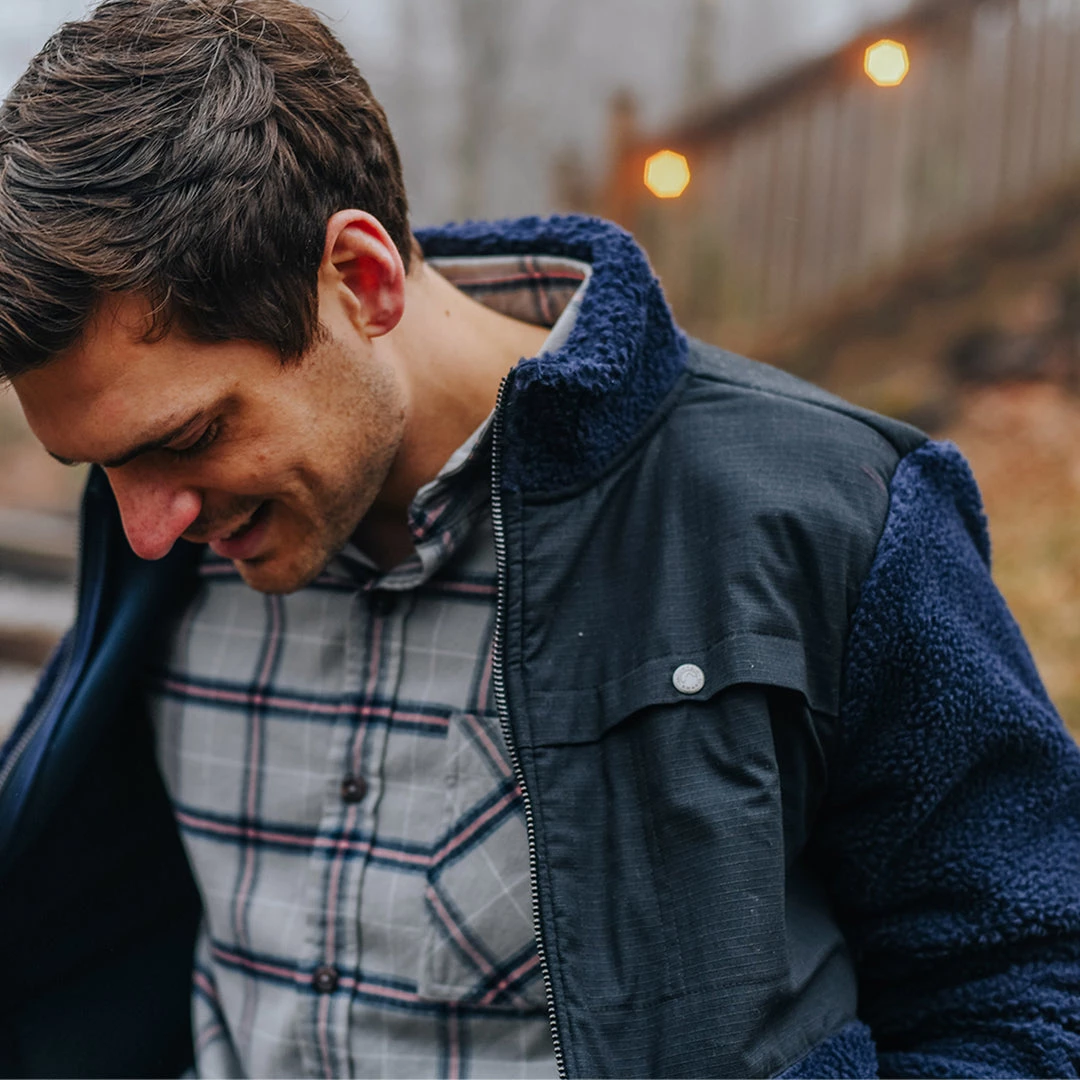 Named for the beauty of Acadia National Park’s forests and rocky beaches, the Acadian Jacket is the perfect Sherpa jacket companion for sightseeing and hiking. Bonus chest pocket with snap closure. Also available as a vest.