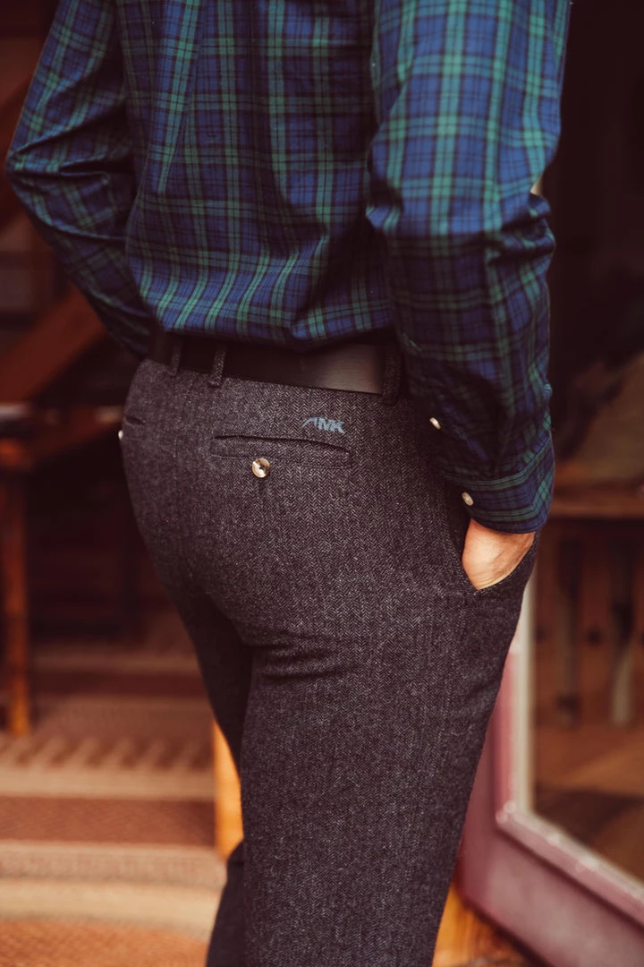Here at Mountain Khakis we believe if you are going to do something you need to do it confidently, boldly, humbly and to the best of your ability. So when you have to ditch the canvas for one of life’s major moments, holiday gatherings or maybe a special night out on the town you should strive for the same execution and carry the dapper flag into the evening confidently. Meet the instantly likeable Archer Herringbone Pant. This small-scale herringbone patterned soft wool blend pant is complete with a premium branded metal shank & YKK zipper closure. Sleek, slanted hand pockets, back welt pockets with button closure and a ½ lining to the knee for comfort.