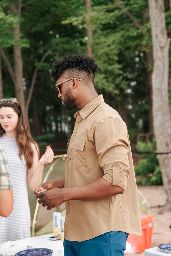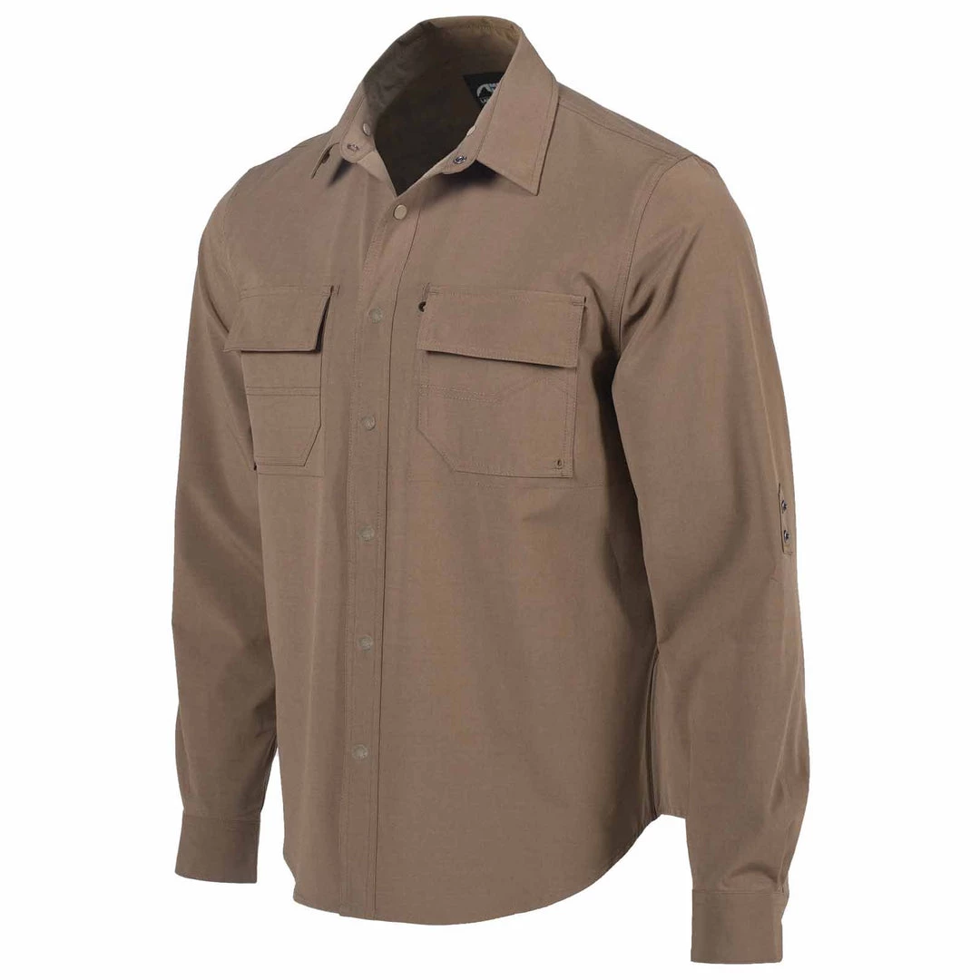 We designed this shirt with one thing in mind: spending all day on the water. Whether you’re fishing in the creek or taking the boat into open water, this shirt is packed with features to keep you cool, comfortable, and protected from the sun. Our lightweight poly fabric stays breathable and has just enough stretch to keep you mobile. Back panel venting increases airflow around your core and roll-tab sleeves let you customize your sleeve length. Protect your neck with our flip-n-snap collar, and clean your shades or phone screen with the built-in chamois cloth.