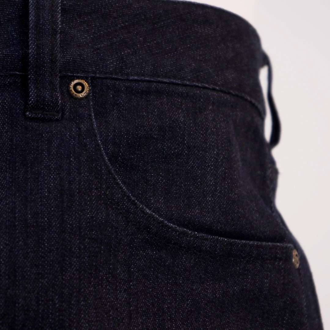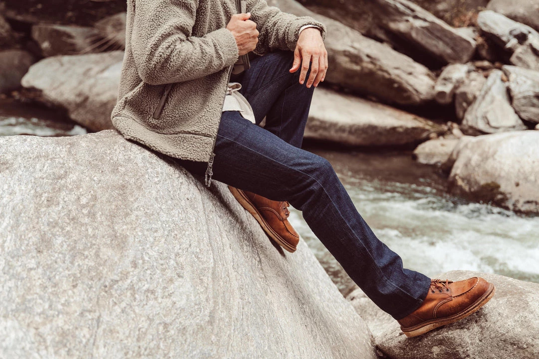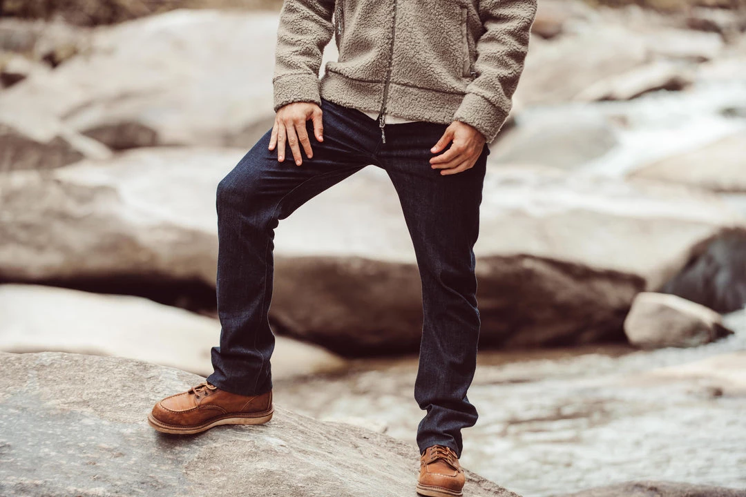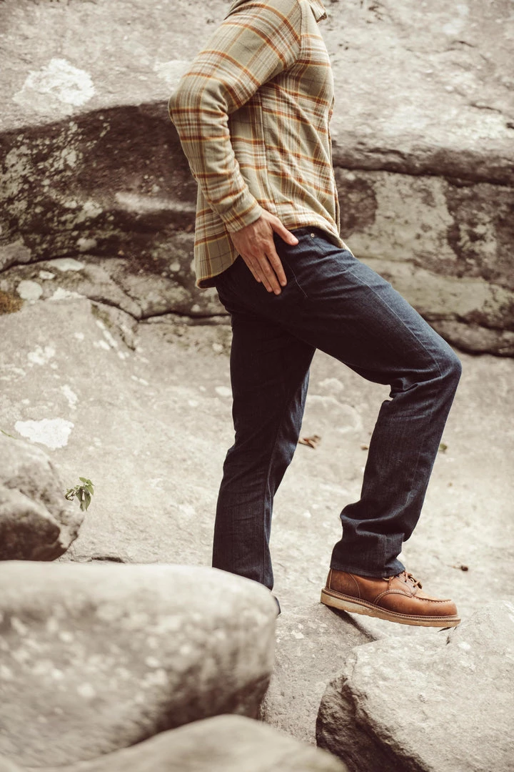 Every gentleman should have a pair of jeans that weather life as well as the calluses on their hands. Protection from the daily grind but also a reflection of hard work and accomplishments. Enter the Miter Denim Jean. Classic 5-pocket design with an organic cotton/stretch blend for just enough give, plus our action gusset for comfort and mobility. Triple-stitched seams and bar-tac reinforcements for supreme durability. Mountain peak stitching on the back pockets serves as a nod to your insatiable desire for adventure and the rugged days ahead.