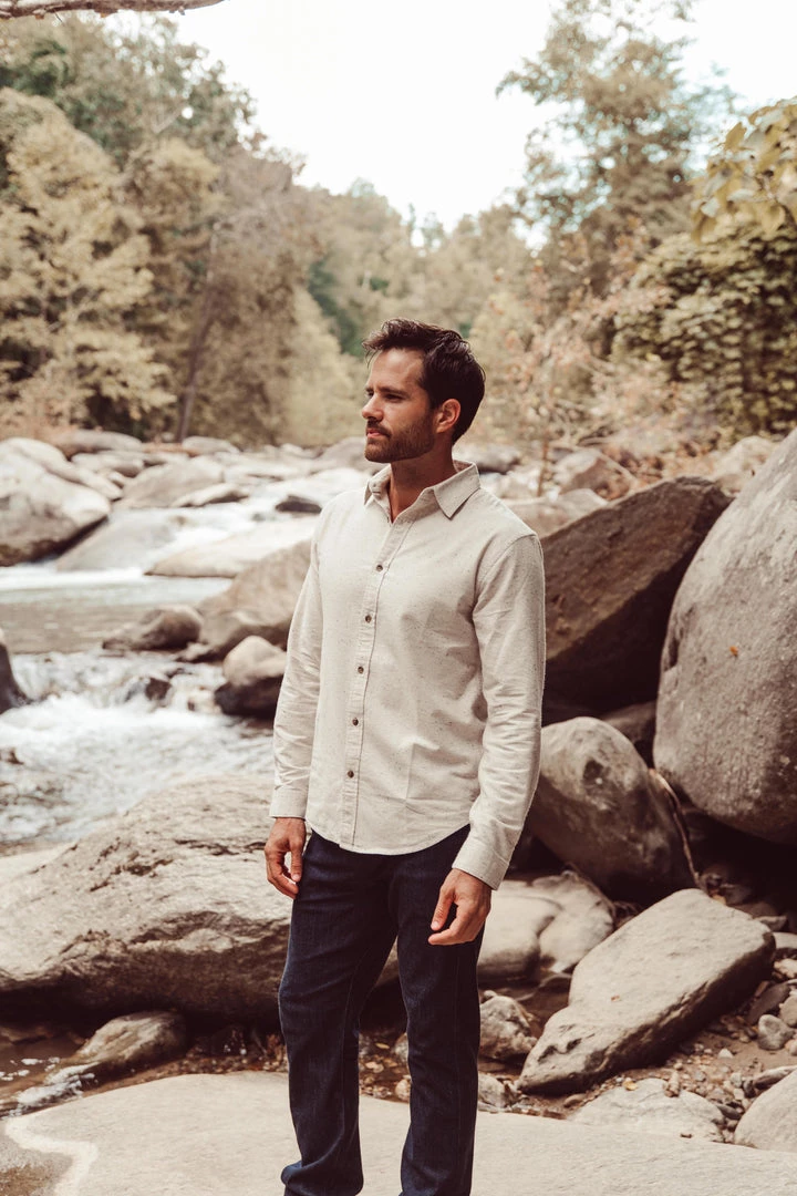 The 5.5oz tweed cotton/poly fabric of the Everett Shirt is a wool-like fabric that’s durable and has a soft brushed feel. Earth-tone flecks are scattered throughout and provide an awesome and interesting fabric. Modern faux horn buttons line the front. This easy-wearing piece feels like an old favorite with all of the hard work of breaking it in already done for you.