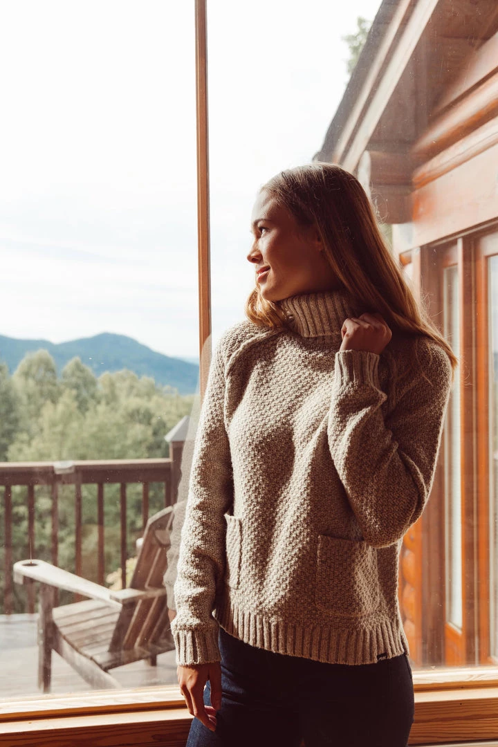 Flecked with earth-tone colors, the timeless Cumberland Sweater is loaded with character and crafted from an extra-fine merino wool and alpaca blend. Did you know merino wool can absorb up to 30% of its weight in moisture and still maintain its ability to insulate, keeping you dry, warm, and comfortable? It’s also naturally moisture-wicking so you stay dry when working up a sweat. This beautiful sweater is cut into a classic turtleneck with raglan sleeves, two patch pockets and a side slit on the hem.