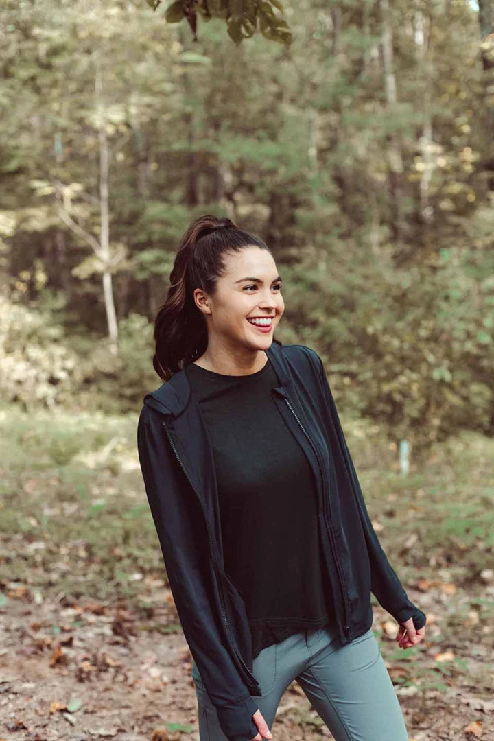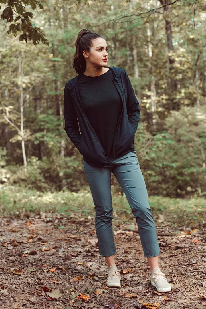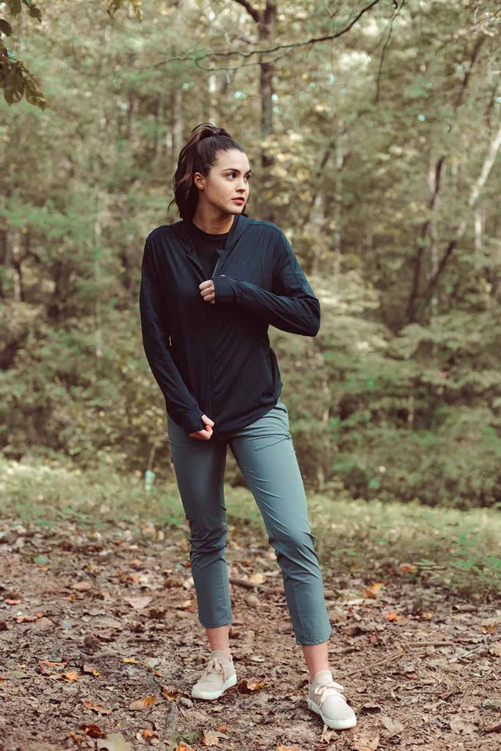 As the name implies, the Trail Chaser Hoody is going places. It’s designed for climbing, chasing trails, and everything in between. As one of our most technical products, it’s loaded with premium fabrics and active protection for an active lifestyle. Scotchgard™ Protector Moisture Wicking helps transport perspiration away and resists staining. The best part is even if you do get something to stick, most stains come right out in the wash. The fabric is quick-dry, breathable, anti-microbial and soft. There’s a 3-panel hood for protection from the elements, plus hand pockets with zipper closure to protect your belongings. You’ll find an envelope cuff with thumb hole, contoured seams for a modern fit, and a rounded hem for an athletic and flattering look.