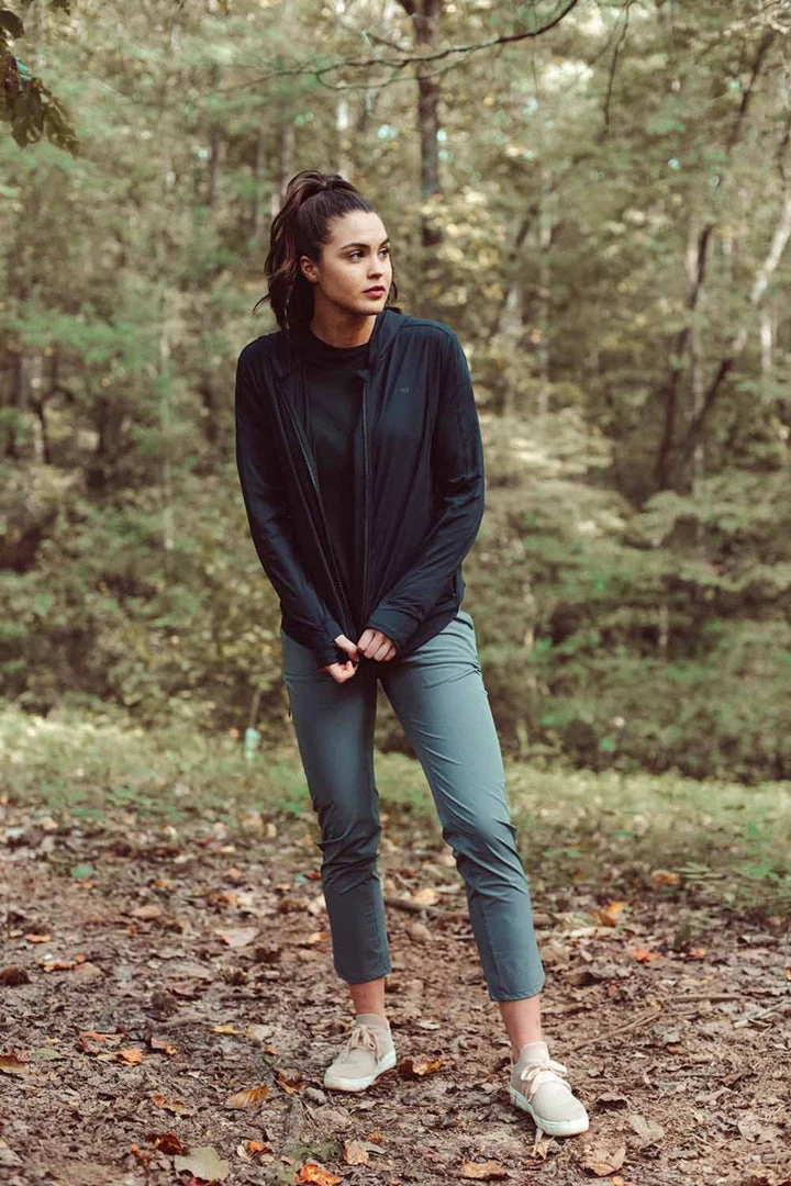 The Trail Pant makes any hike feel like a walk in the park. This is your perfect all-season alternative to hiking or climbing in those old leggings or sweats. The 3.8oz nylon/spandex blend is loaded with features, starting with 4-way stretch and a DWR coating of 80/10 so intense terrain or weather won’t play a factor in your adventure planning. No trail pant is complete without a generous amount of pockets to hold your valuables so we included six: deep hand pockets in the front, inset drop pockets with zipper closure on the back, one hidden zippered pocket on the right thigh and one hidden side seam pocket on the left. Finished with premium branded metal snaps and YKK zipper closure.