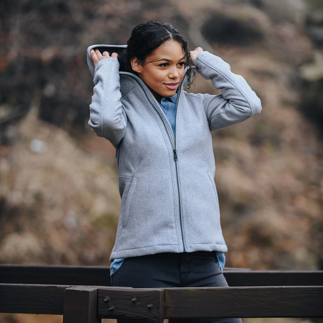 Meet the Walker Hooded Jacket, made with welded wool in a rider jacket style. The contoured waist and on-seam hand pockets gives a flattering fit, and a touch of stretch provides ample comfort and movement.